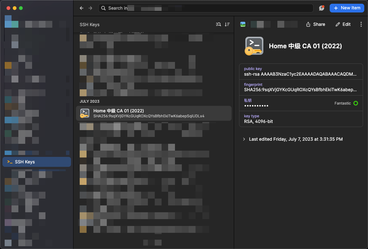 和 2023 年一样,这次维护用了 1Password 帮忙存储和读取 key,不过生成 Private key 的功能尚在 beta 阶段,所以还是先用 openssl 生成。