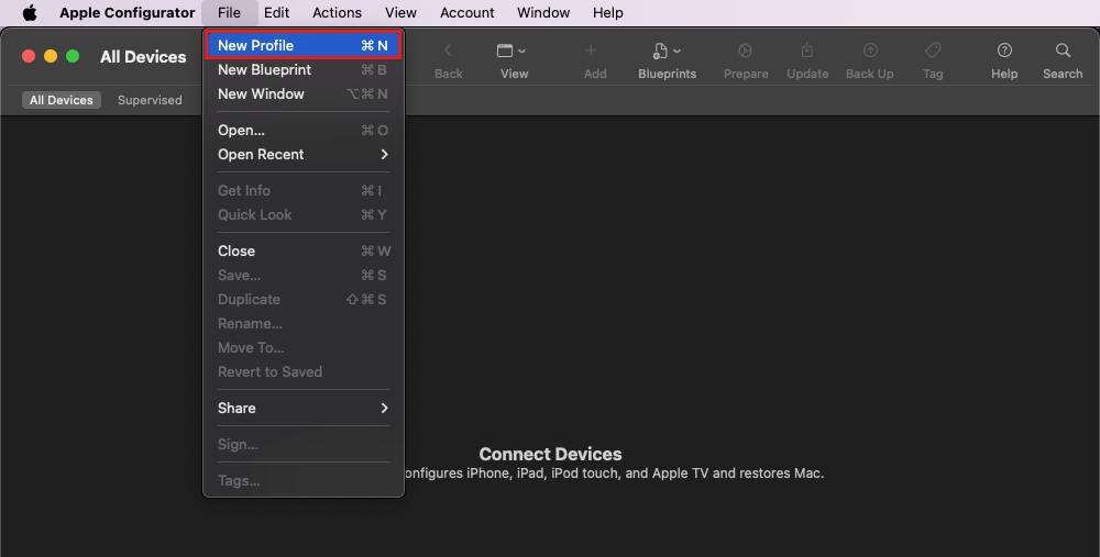 对于 iOS 设备而言,虽然我们可以通过 AirDrop 或者电子邮件的方式将 .p12 文件发送到 iOS 设备后直接配置,但是我们可以利用 Apple 官方提供的名为「Apple Configurator」的工具更方便地操作。
