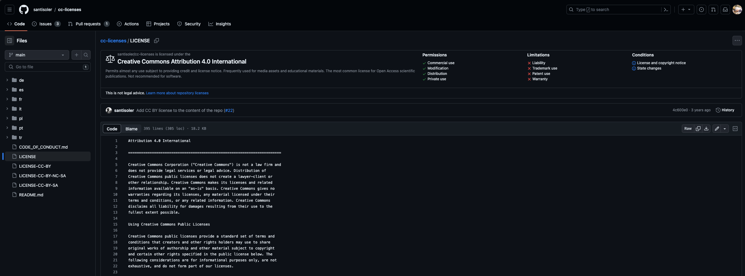 如果我们在我们所复制出来的 CC 协议来源的 Repository santisoler/cc-licenses: Creative Commons Licenses for Github 中搜索,是可以看到有别人提出过类似的问题的: