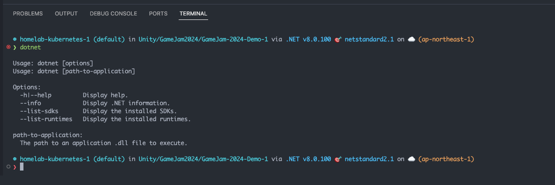 然而如果我通过命令行直接尝试的时候发现是能调用到 dotnet 的,命令行也反馈说能找到 .NET 8