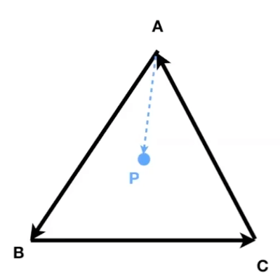 P和一个三角形,通过遍历三角形所有边并叉乘点P的相对位置,还可以得出点P是在三角形的内侧还是外侧。