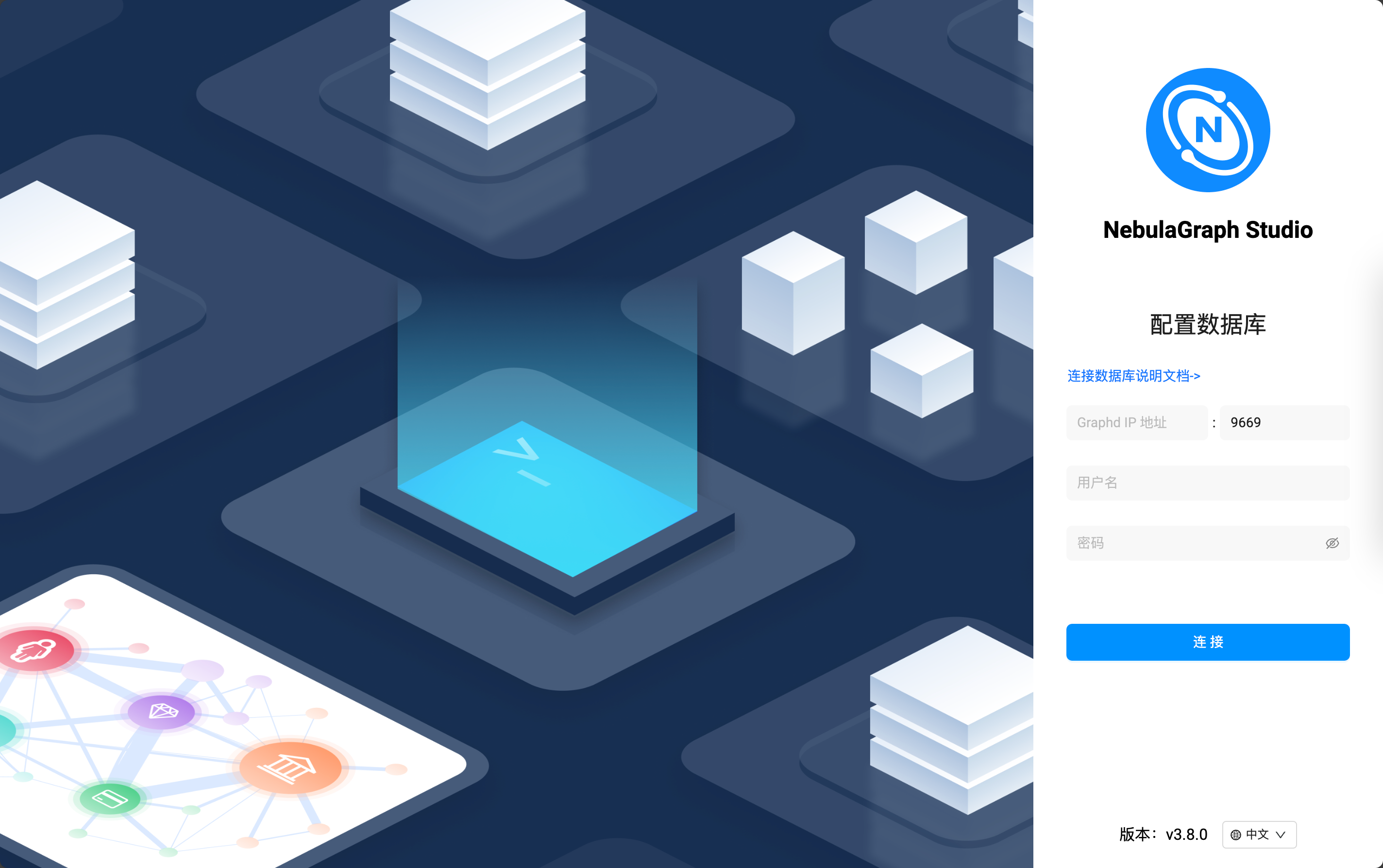 nebula-studio-nodeport NodePort 10.96.36.19 <none> 7001:30102/TCP 29s app.kubernetes.io/instance=nebula-studio,app.kubernetes.io/name=nebula-studio这个时候返回到开发的设备上通过 localhost:30102 就可以访问到了: