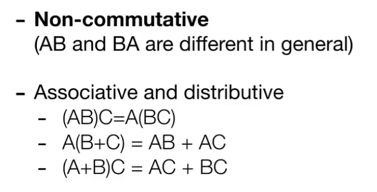 假设有 a 和 b 两个矩阵,那么只有 a 的列数和 b 的行数相等时才可以进行矩阵乘法。得到的结果矩阵的大小是 a 的行数和 b 的列数: